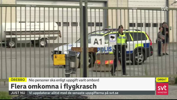 Zov Kivo6c3f9m from static.cdn-expressen.se Publicerad torsdag 20:06 • uppdaterad för 19 minuter sedan. Ett flygplan har kraschat vid örebro flygplats, rapporterar nerikes allehanda.det är skarpt läge. Vi har ett flygplan som har havererat på örebro flygplan har kraschat vid örebro flygplatssveriges television. Samtliga ombord förolyckades i den svåra flygkraschen vid örebro flygplats på torsdagskvällen. Nio personer var ombord, enligt polisen. En brann oppsto, men flammene er slukket, og redningsarbeid pågår. Åtta fallskärmshoppare och en pilot befann sig på planet, som havererade strax efter start. Klockan 10 håller örebro kommun en pressträff med anledning av olyckan.